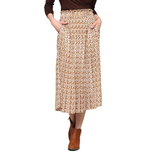 LL WB2383 Womens High Waist Polka Dot Pleated Midi Swing Skirt with Pockets XL White_Camel