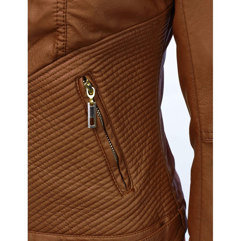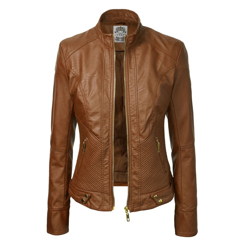 LL WJC747 Womens Dressy Vegan Leather Biker Jacket M CAMEL