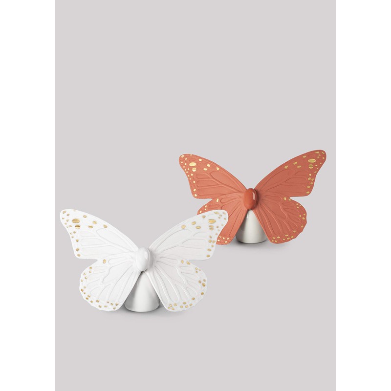 LLADRÓ Butterfly Figurine. Golden Luster & Coral. Porcelain Butterfly Figure.