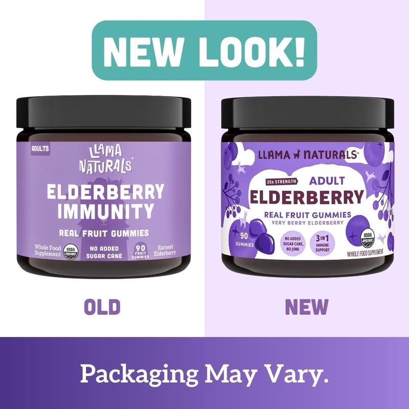 Llama Naturals Llama Naturals Real Fruit Sambucus Elderberry Gummies for Adults | No Added Sugar Cane, Vegan, Organic Immune Support | Zinc & Natural Vitamin C | Immunity for Women, Men | 90 Gummies (30 Day)