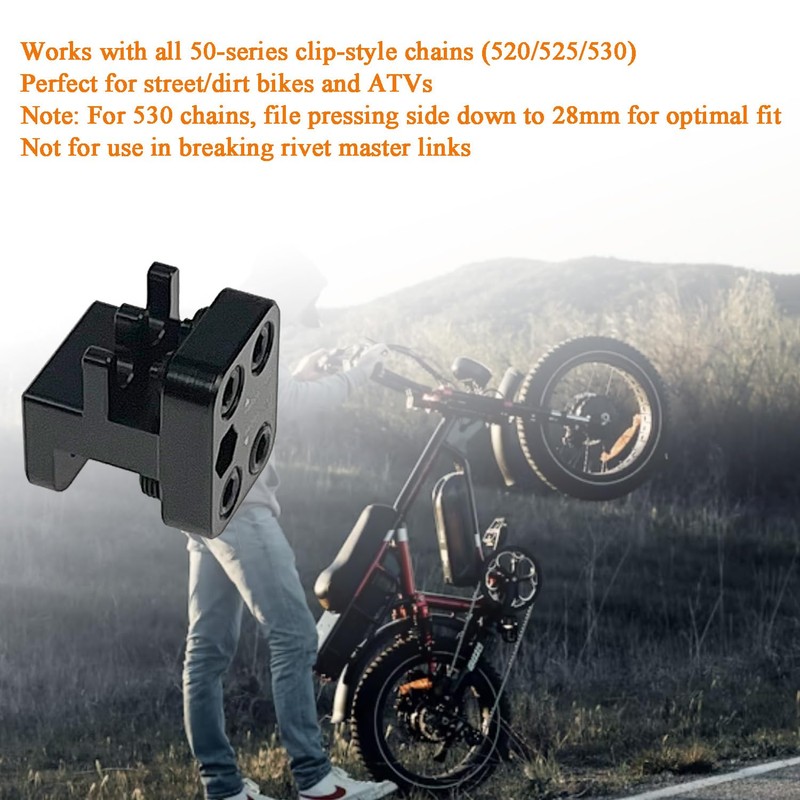 - Precision Engineering: Securely Presses Master Link Plates with Controlled Force, Preventing Chain Damage While Reducing Installation Time By 70%. Ideal for Roadside Repairs, Track Days, and Off-Road Adventures