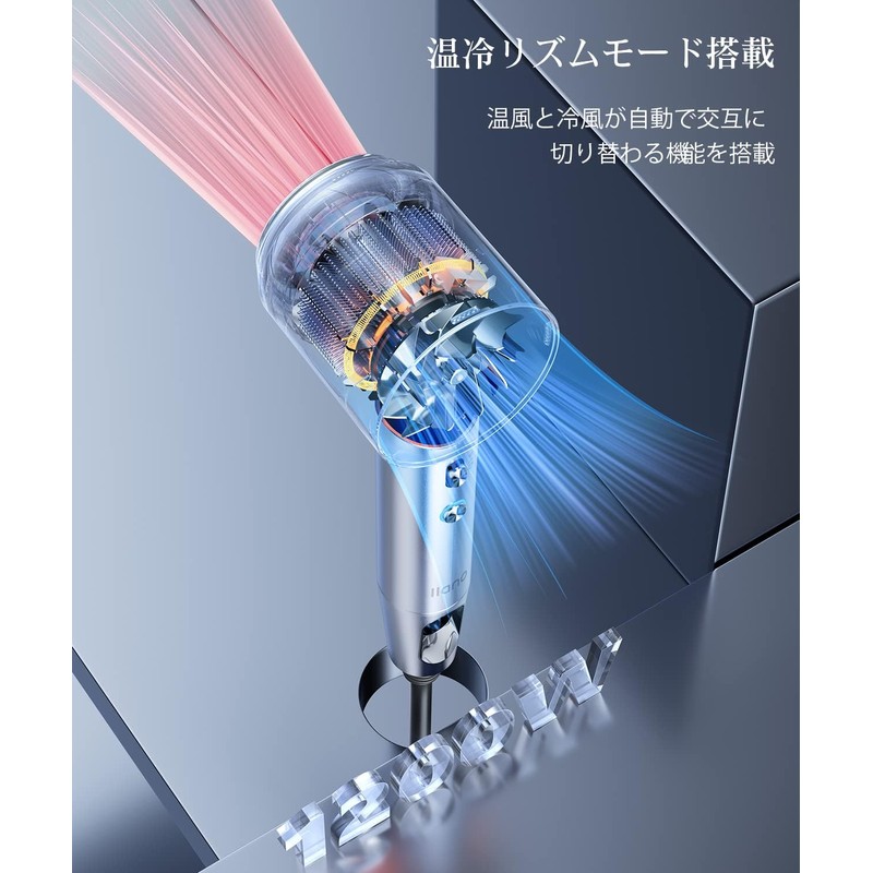 llano Hair Dryer, Large Airflow, 12.0 oz (340 g), Ultra Lightweight, Dryer, 1200 W, Quick Drying, Hot and Cold Rhythm, 5 Wind Temperature Modes, 20 Million Negative Ions, For