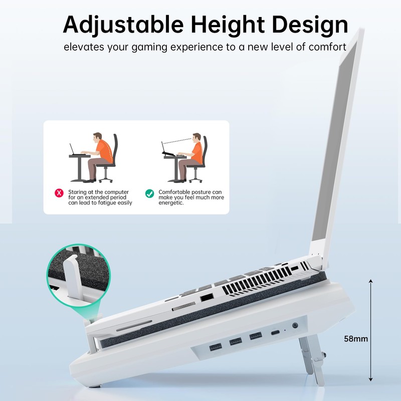 llano llano Laptop Cooling Pad with Powerful Turbofan(5.5inch Diameter), Fast Cooling Gaming Notebook Computer 15.6-21in, Adjustable Speed, Touch Control, LCD Screen, 3-Port USB A (White V13 Without RGB)