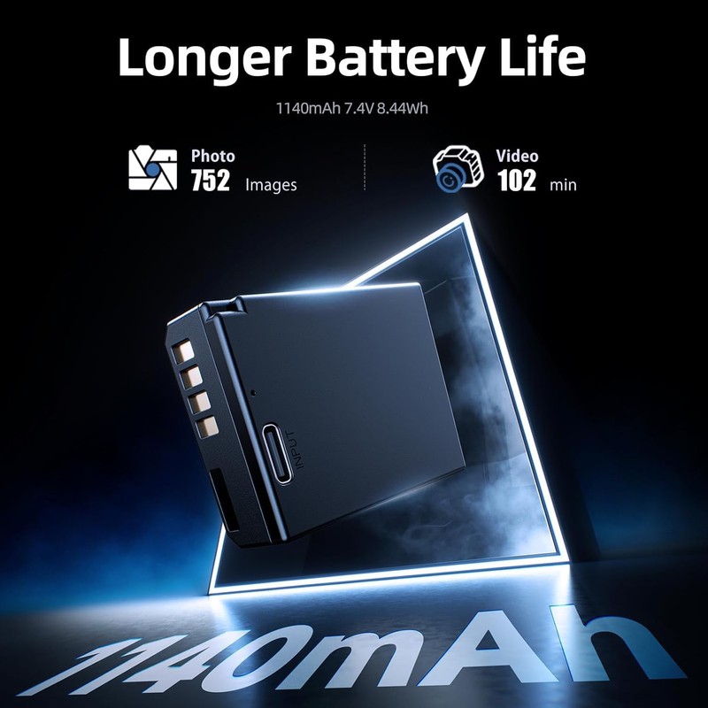 • 2*1140mAh Real Capacity for Extended Shooting: The 2-pack rebel t7 battery for canon with double professional-grade 1140mAh capacity (7.4V/8.44Wh) are engineered for demanding creators, surviving 500+ full charge cycles without losing peak performance. Built to outlast marathon shoots, it eliminates memory effect while delivering extended runtime for 4K video session.