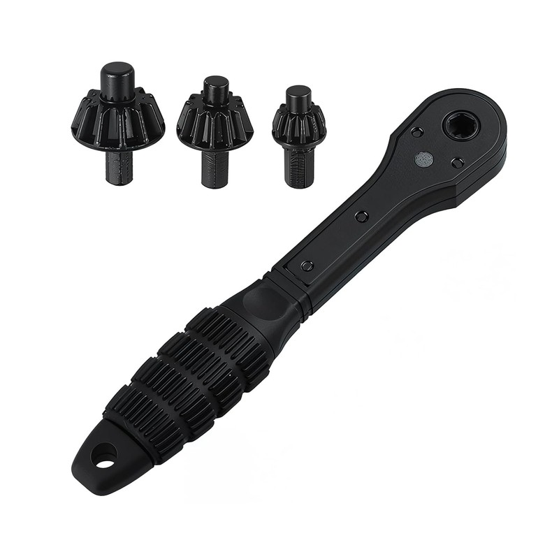 Fabricada en acero al carbono 45# de alta resistencia, su estructura duradera resiste el desgaste, mientras que el mango antideslizante de goma proporciona un agarre seguro y cómodo. El mecanismo de trinquete reversible facilita el ajuste del mandril sin esfuerzo, reduciendo la fatiga de muñeca y mejorando la eficiencia.