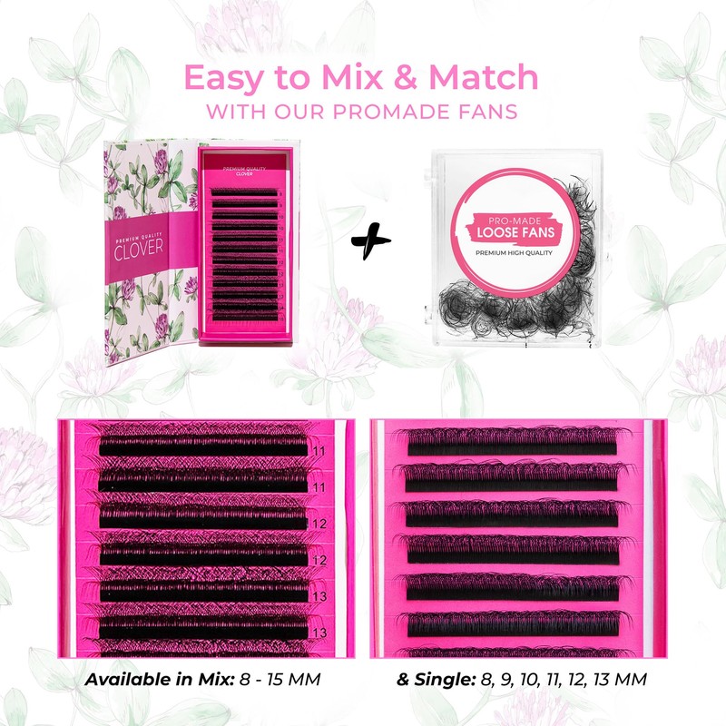 - ✅ DIVERSE STYLE OPTIONS: From subtle to dramatic, find your perfect style with our Clover Lash. Available in single and mixed trays ranging from 8mm to 15mm, with curl options in C, CC, and D, combined with a 0.07 thickness, offering versatility for every preference.