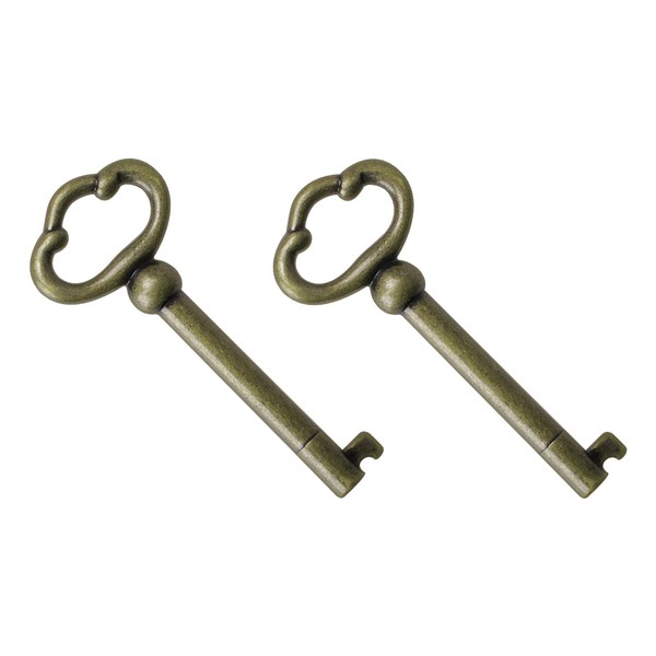 Llhhs Antique Brass Plated Hollow Barrel Skeleton Key, KY-2AB Universal Skeleton Key for for Cabinets, Curio, Jewelry Boxes, Desk, and More (2 Pack)
