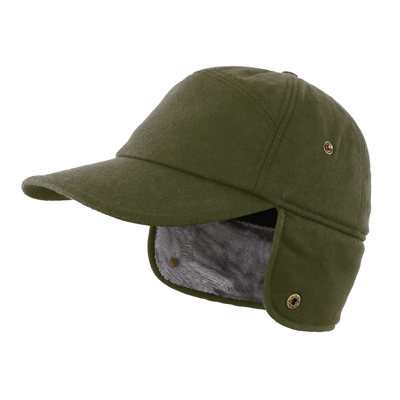 LLmoway Men Warm Baseball Hats Winter Windproof Fleece Earflap Fitted Hat with Visor Army Green L