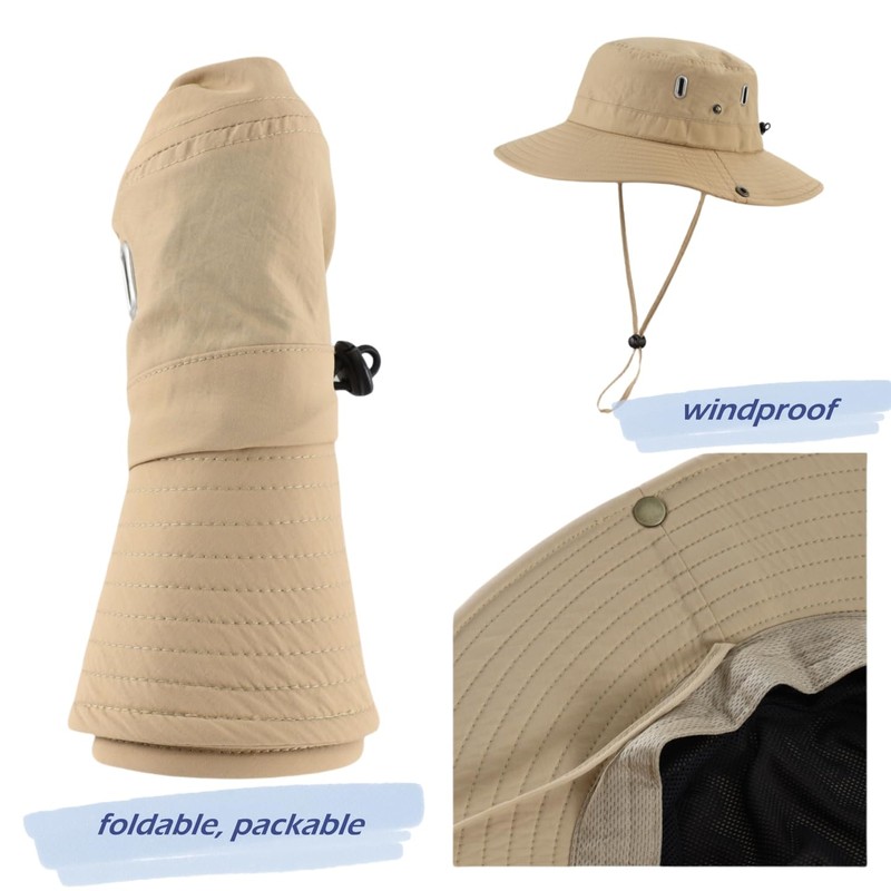 Main features: sun protection UPF 50+, breathable, quick dry, windproof, water resistant, lightweight, adjustable, foldable, packable