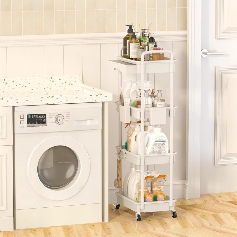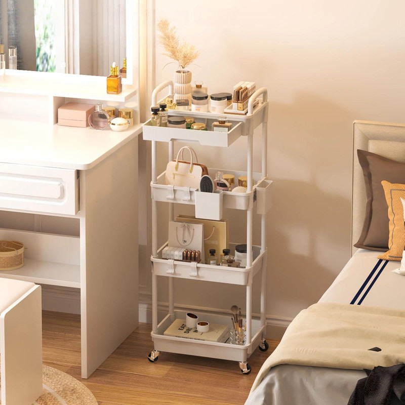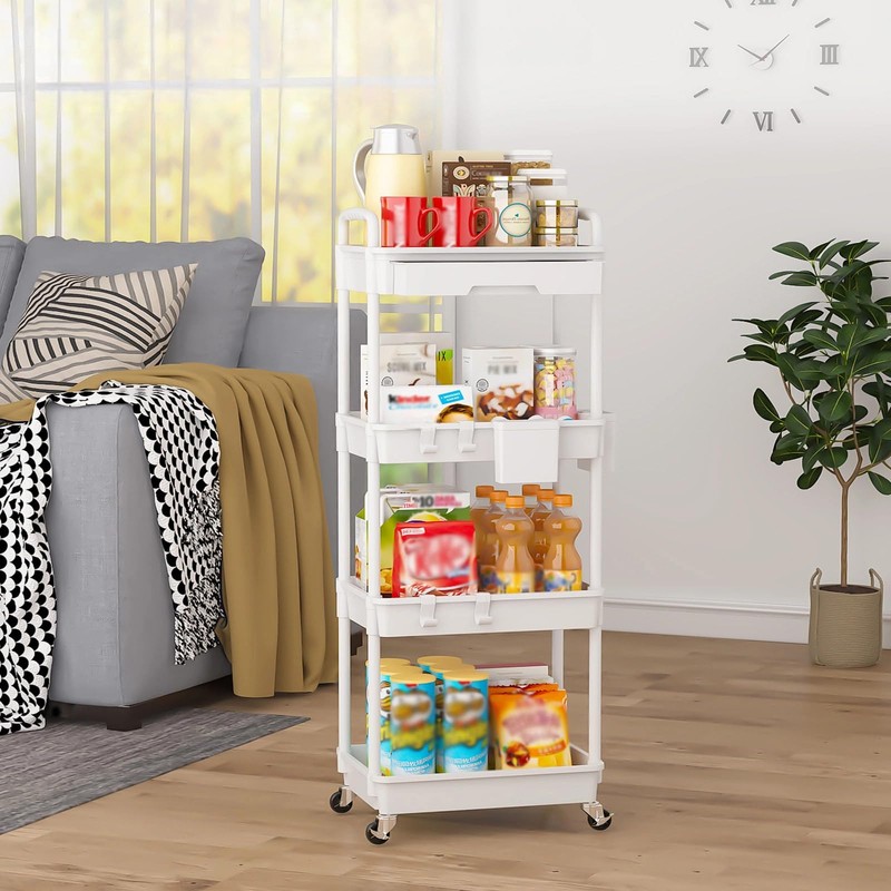 - 【Extra Storage Space】Our 4-tier storage rolling cart is equipped with drawer and comes with 2 hanging cups and 4 hooks, maximizing space effortlessly in kitchens, living room, bathrooms, office, or art craft rooms.