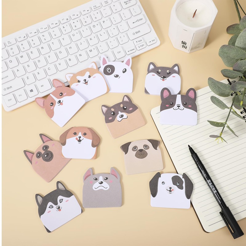 LLOUSSAK 12 Pack Cute Sticky Notes, Cartoon Cute Animal Shape Markers Flags Fun Sticky Notes Self Stick Notepad Pages for Home, School and Office