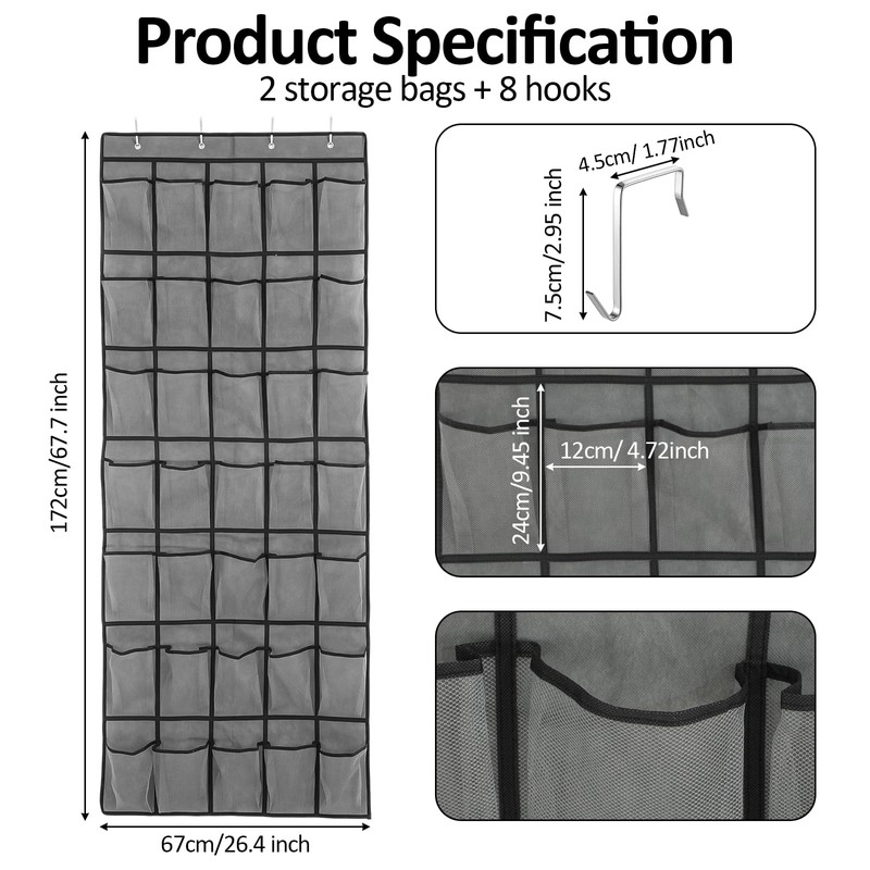 - 【Perfect Gift for Friends】: Shoe organizer kit package includes 2 behind the door shoe organizers with 35 large mesh pockets with 8 hooks to meet your different needs. Elder holiday gift, birthday, Christmas, anniversary and other occasions.