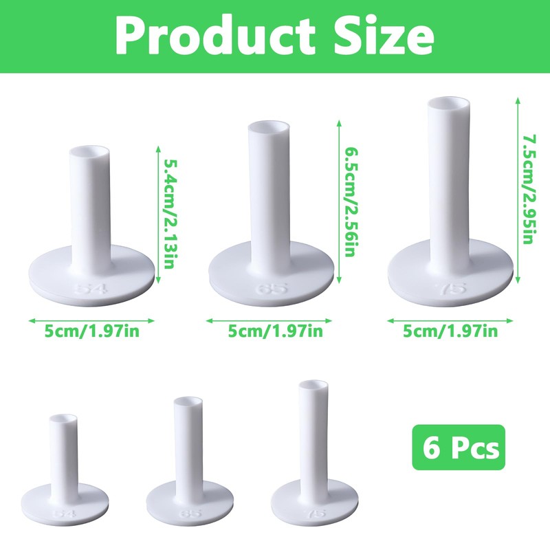 LLOUSSAK Pack of 6 Golf Tees, Rubber Golf Seats, White T-shape Golf Ball Accessories, Soft Rubber Range Tee with Different Sizes for Indoor and Outdoor Golf Practice