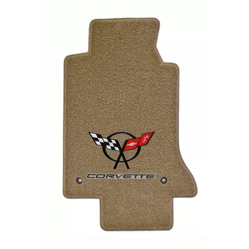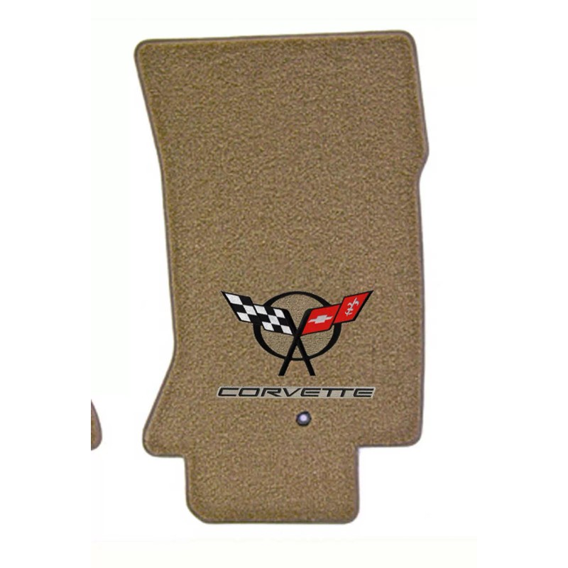 Lloyd Mats NEW! FLOOR MATS Tan 1997-2004 C5 Corvette Crossed Flags Embroidered Emblem Logo