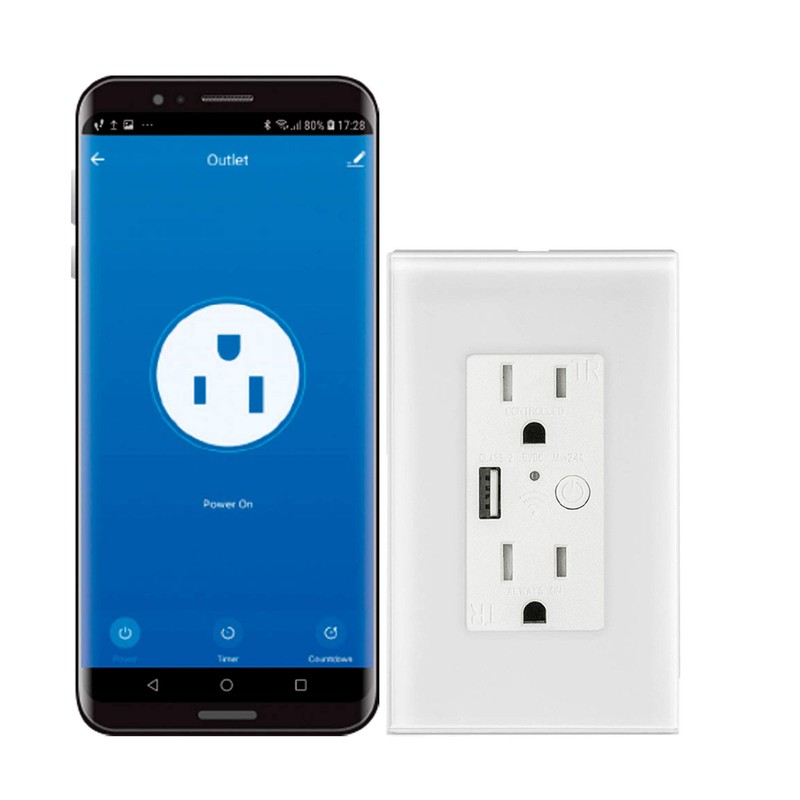Lloyd's LC-1280 Placa De Pared Wifi Control de 2 Plugs y USB, Compatible con Alexa y Google Assistant, Automatización Inteligente