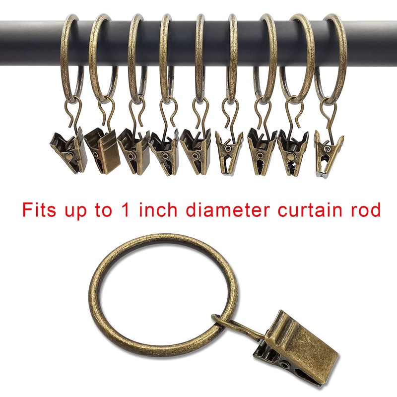 - 3: CURTAIN RINGS CLIPS DIMENSIONS: Curtain rings inner diameter 1.26 inch, Fits up to 1 inch curtain rod.