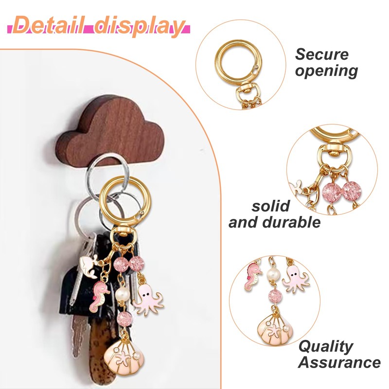 - Adorably Cute Squad!Pink octopus, dolphin, seahorse & sparkly shells hang out on glittering pink & white crystal beads – your keys just got 100x happier!