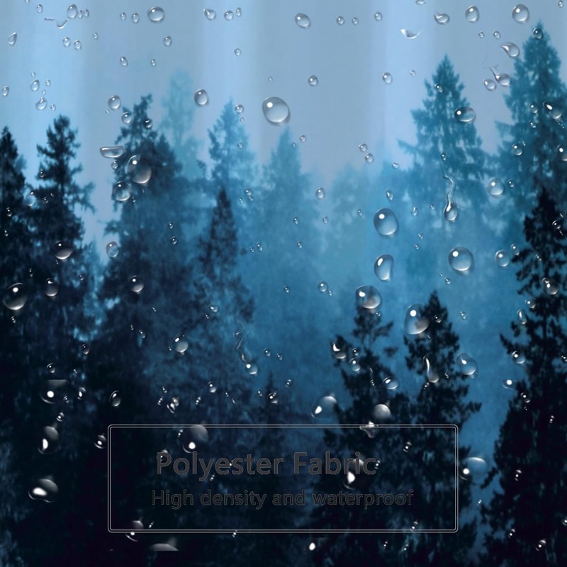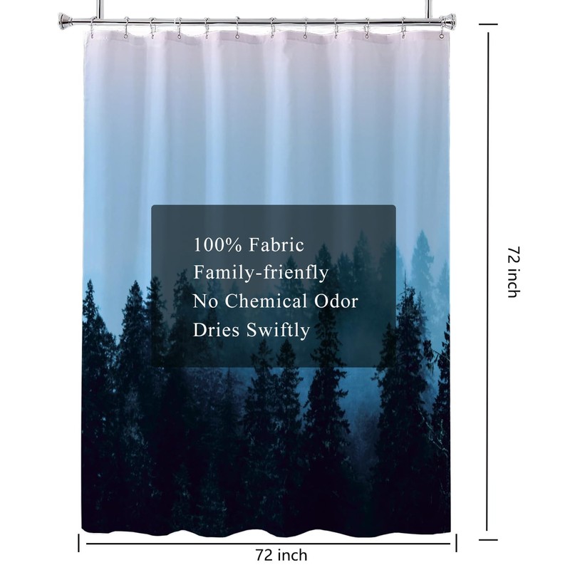 LLSCL Fabric Shower Curtain Liner with Magnets, Blue Forest Waterproof Hotel Quality, 72 x 72 Machine Washable