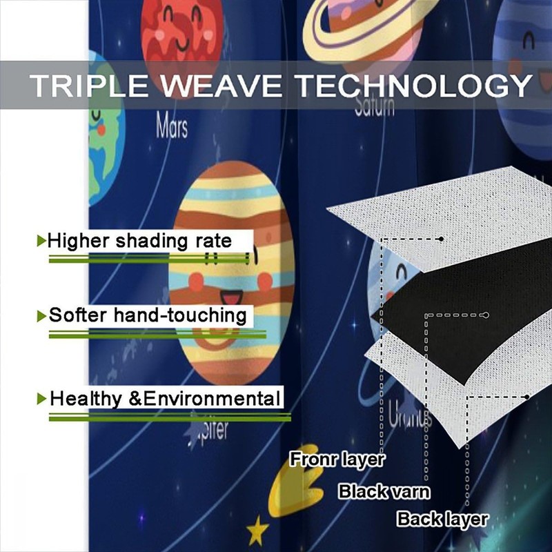Llylumty Solar System Universe Curtains for Kids Boys Child Room Outer Space Planet Learning Study Knowledge Galaxy Rod Pocket Darkening Window Treatment Drapes 21x45in,2 Panel Set
