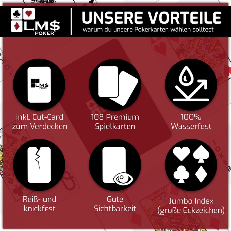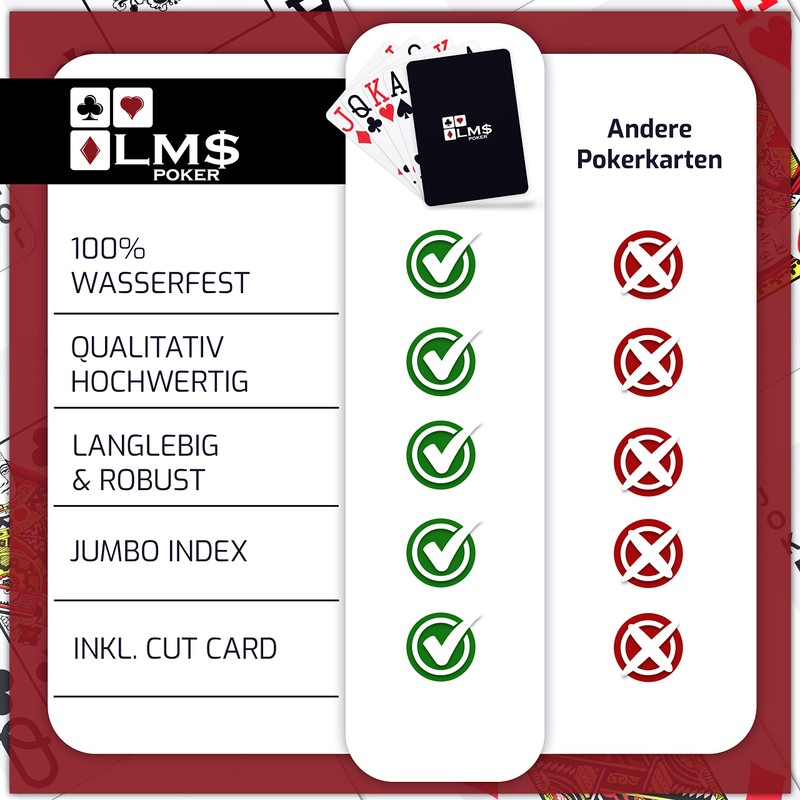 Are you looking for good poker cards in the highest quality casino quality, for a fun poker round with your friends? With the cards from LM$ all the advantages are combined in one set.