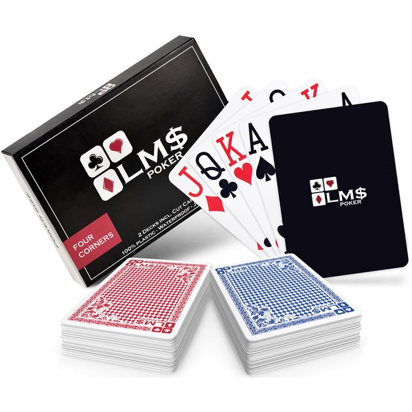 LM$ Poker Cards Plastic Professional 4 Corner Signs with Cut Card - [2 x] High-Quality Poker Cards 54 Sheets - Waterproof and Sturdy Playing Cards in Double Pack - Plastic Cards with Jumbo Index