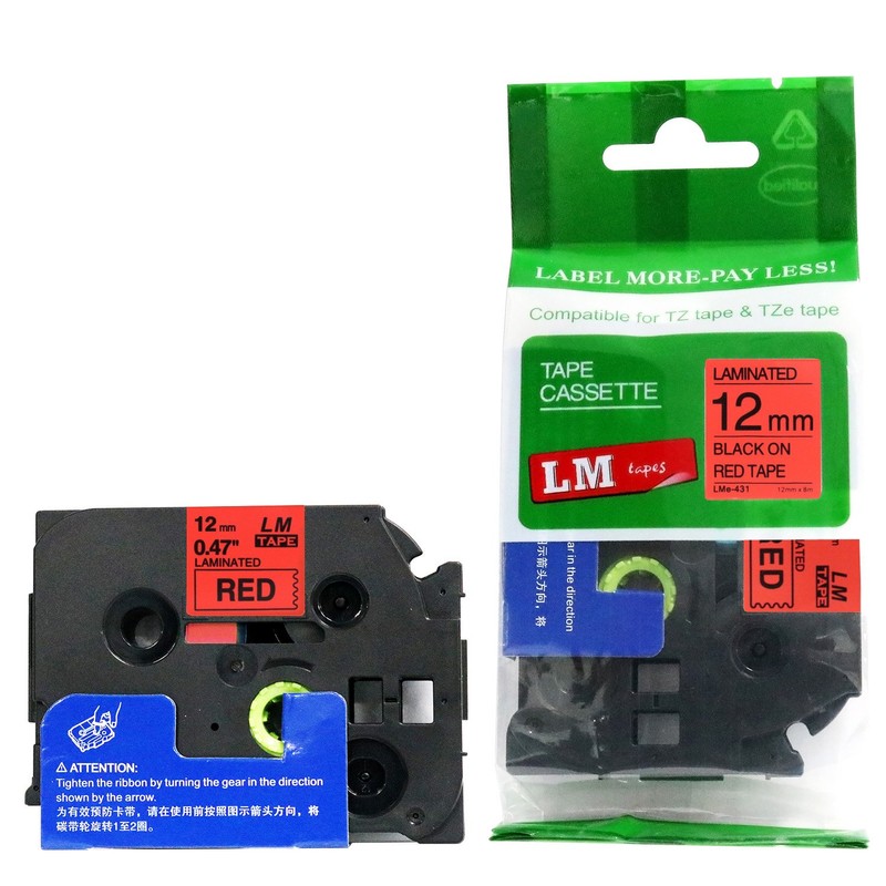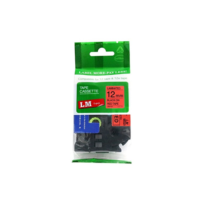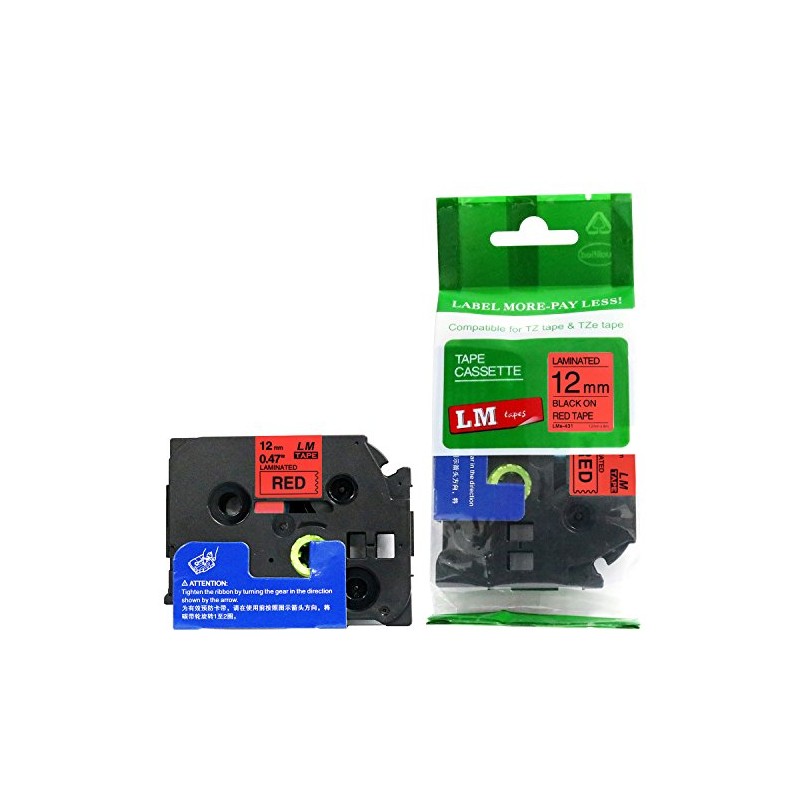LM Tapes - Brother PT-1290 1/2" (12mm 0.47 Laminated) Black on Red Compatible TZe P-touch Tape for Brother Model PT1290 Label Maker with FREE Tape Guide Included