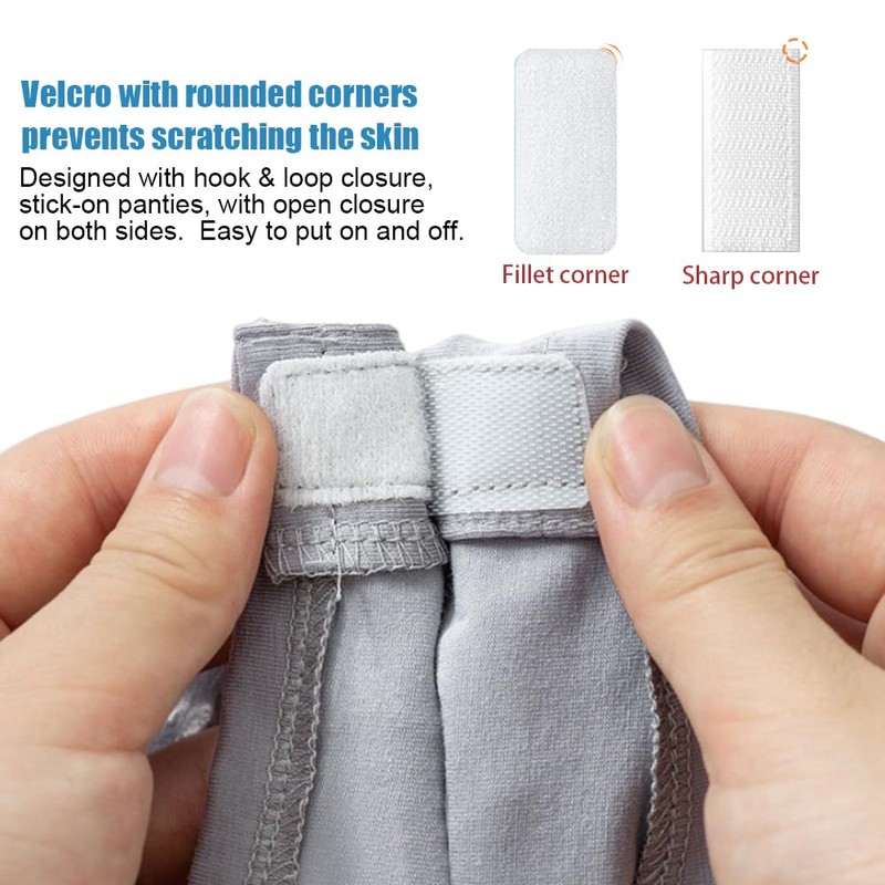 - Designed with hook & loop fastener closure, stick-on panties, with open closure on both sides. Easy to put on and off.