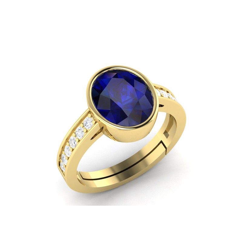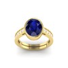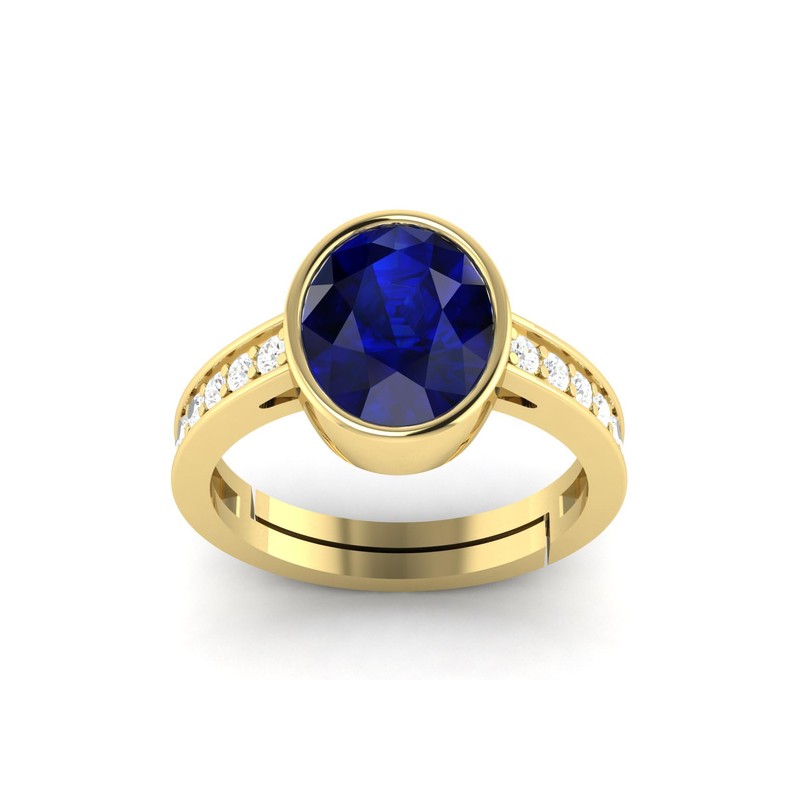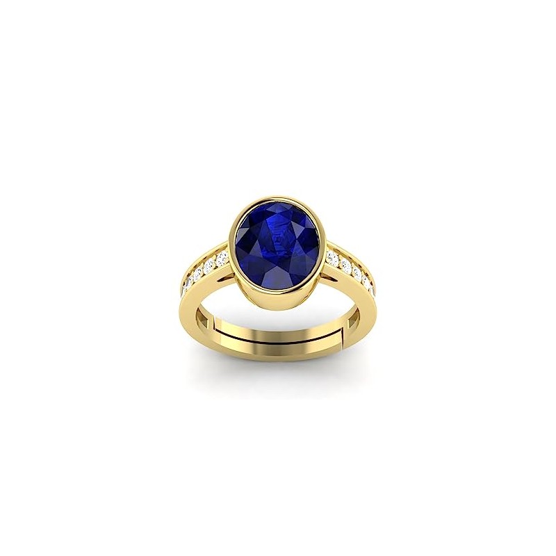 LMDPRAJAPATIS 3.25 Carat 6X8 MM Oval Blue Sapphire Birthstone 22 k Gold Plated Jewellery Ring (Gemstone Tested By Lab Certificate)