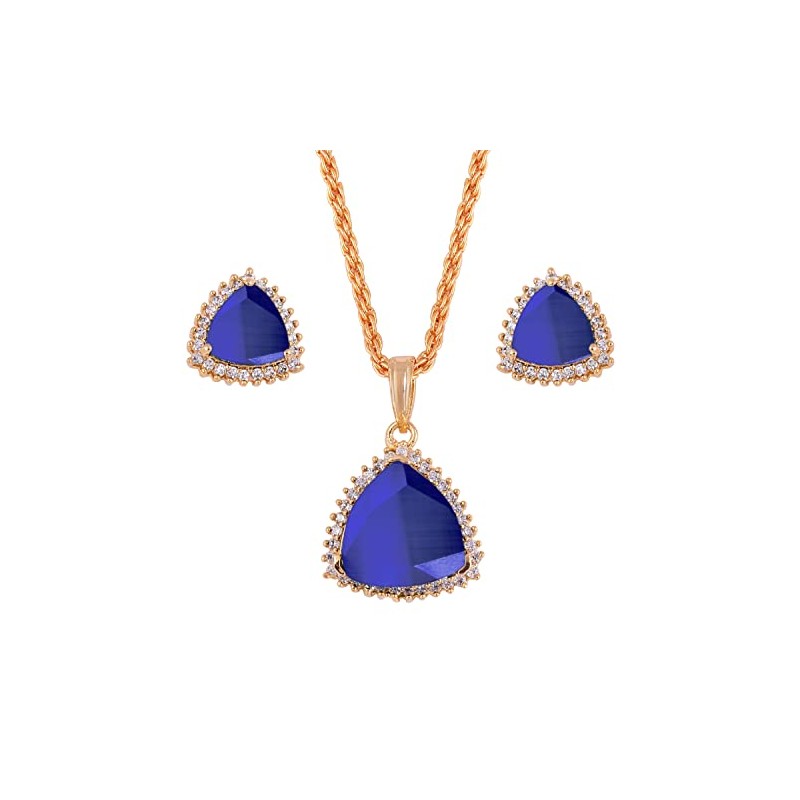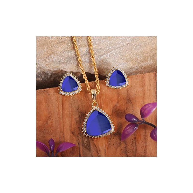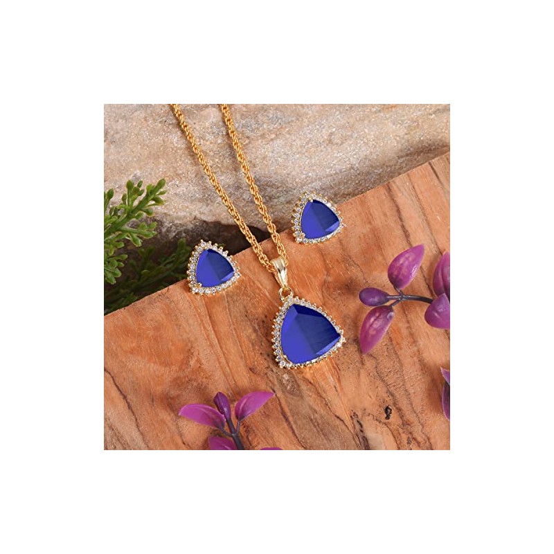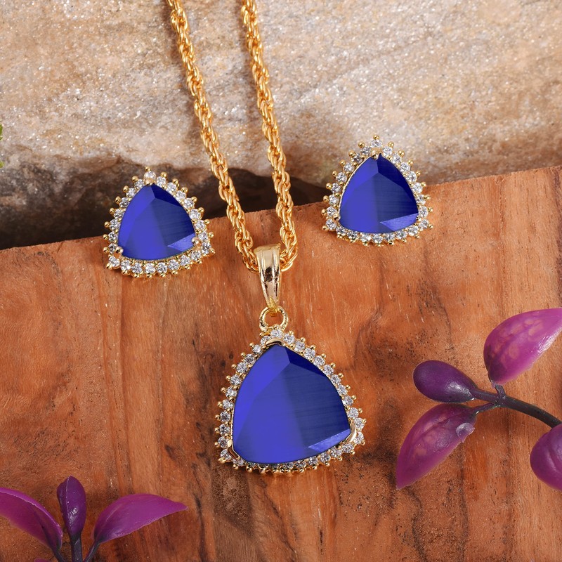 - Natural Blue Sapphire Pendant With Earring Set