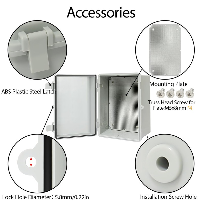 - [ Latch Design ] - Design with two plastic latches to offer a better seal performance with rubber grommet; Locking hole can be used worry free in outdoor environment.