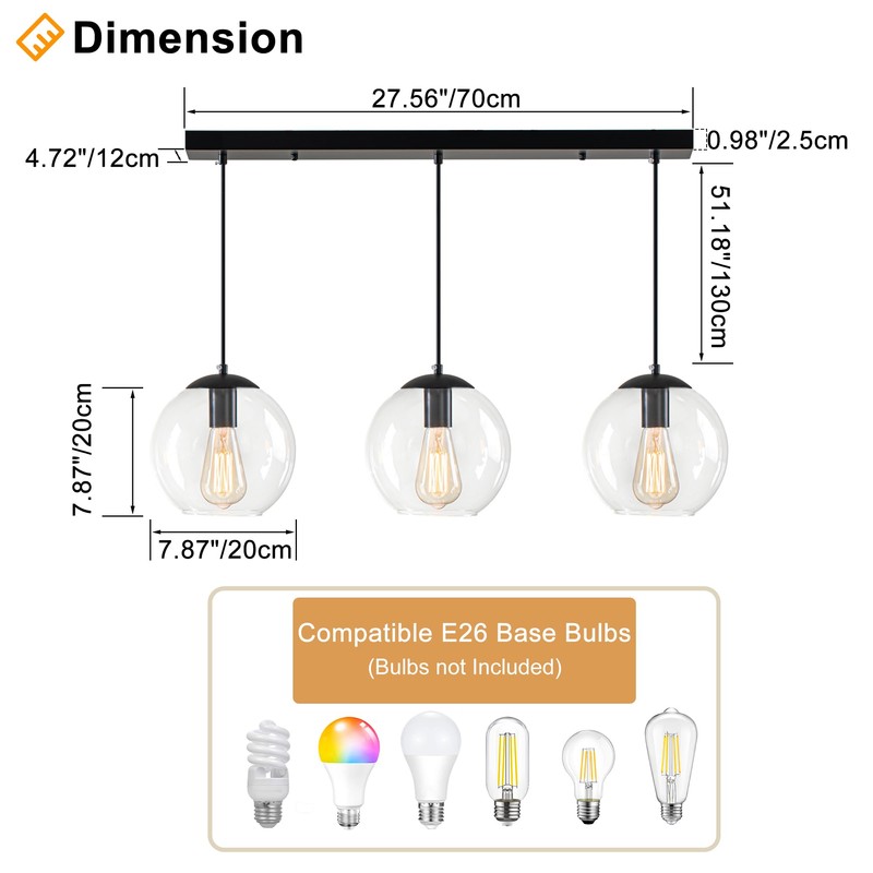 - Compatible with E26 Bulbs: Requires 3 x E26 base bulbs, max 60W each (bulbs not included). Works with LED, Edison, CFL, or incandescent bulbs. Fully dimmable when paired with dimmable bulbs and a compatible switch, giving you flexible brightness control.
