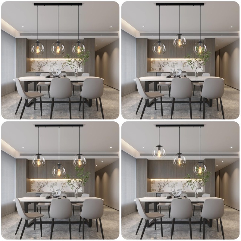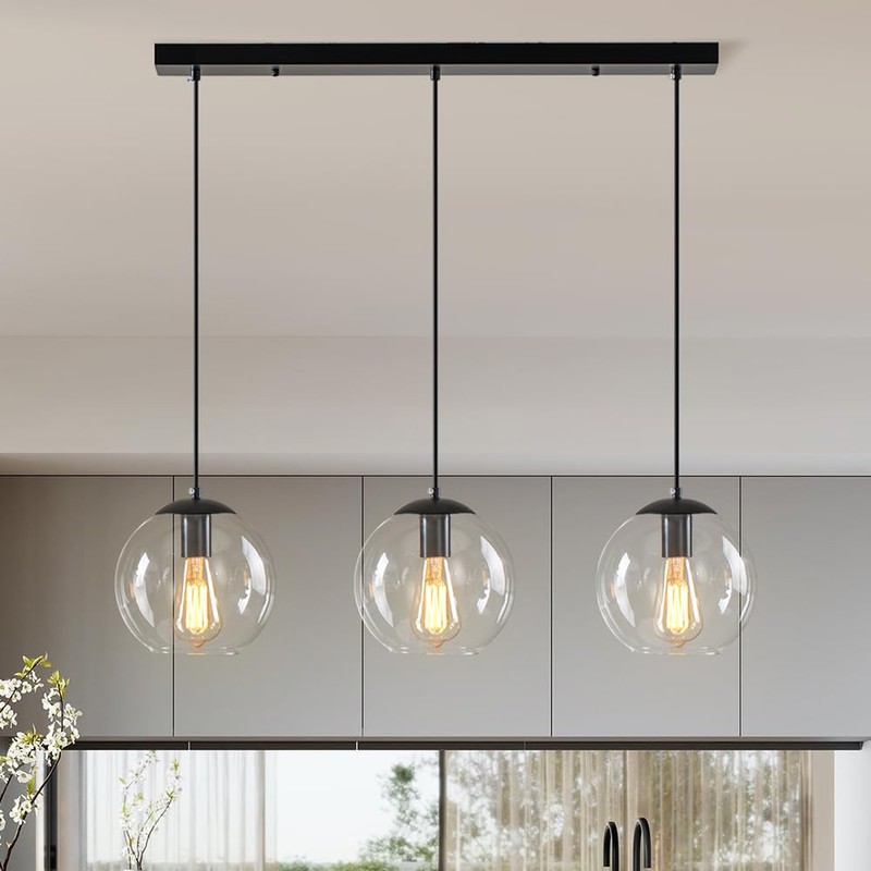 - Modern and Elegant Globe Design: This 3-light cluster chandelier features clear round glass shades paired with a sleek matte black canopy. The timeless globe shape adds warmth and elegance, casting a cozy glow that enhances kitchens, dining rooms, living spaces, and entryways.