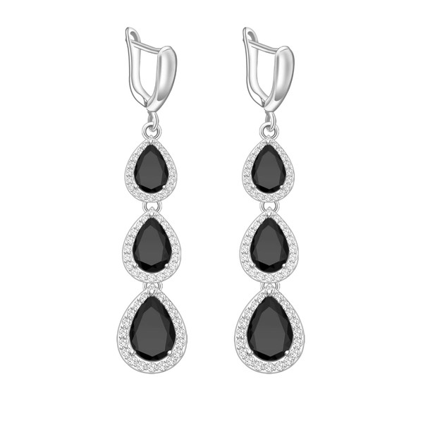 LMXXVJ Black Stone Women's Drop & Dangle Earrings,Platinum Plated CZ Gemstone Earring Fashion Gift for Mom/Wife/Sister/Best Friend,Silver-Tone