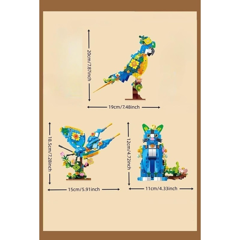 - ✔【3 IN 1 Creative Animal Building Set 】- A box of three changes, Unlimited creativity, a set of building blocks free to put together a vivid parrot decorated with colorful flower patterns, cute charming cats and dancing butterflies. three shapes, stimulate children's imagination and hands-on ability, unlock a variety of fun gameplay