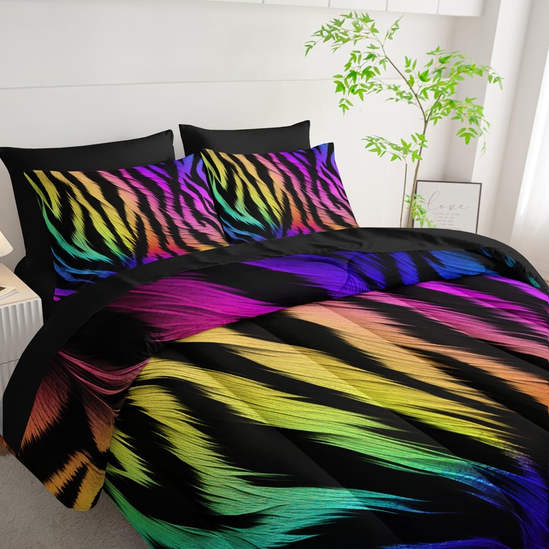 - Colorful leopard print theme design: 7 pieces set includes: 1 leopard print comforter set + 1 flat sheet + 1 elastic sheet + 2 pillowcases + 2 decorative pillowcases with dynamic and energetic patterns.