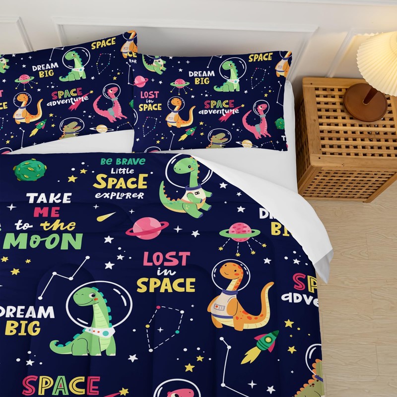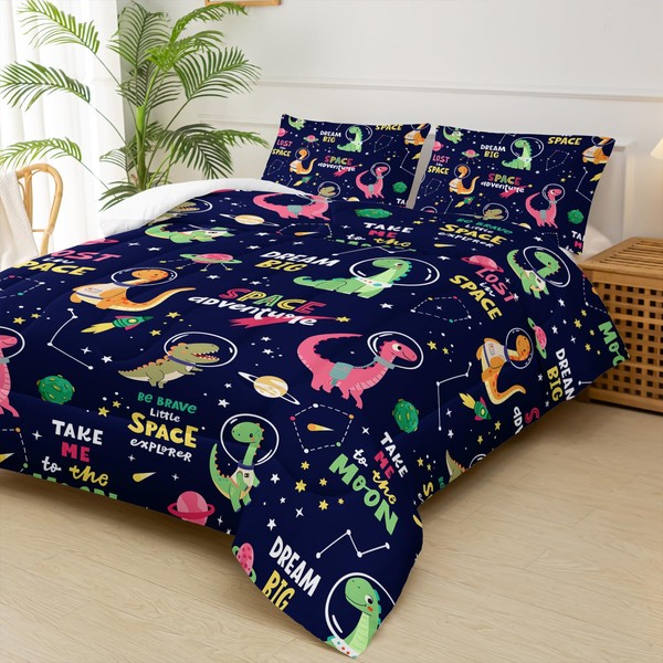 lneffble Dinosaurs in Space Full Comforter Set,Full Size Bedding Set for Boys Dinosaurs,with 1 Comforter with 2 Pillow Case