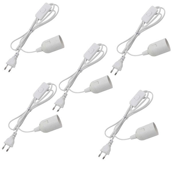 LNGJIN Pack of 5 E27 Lamp Holder with Switch and Power Cable, White E27 Lamp Socket with EU Plug, E27 Socket Lamp Holder, Lamp Holder with Cable, for Lamp Hanging, Pendant Light, Ceiling Light