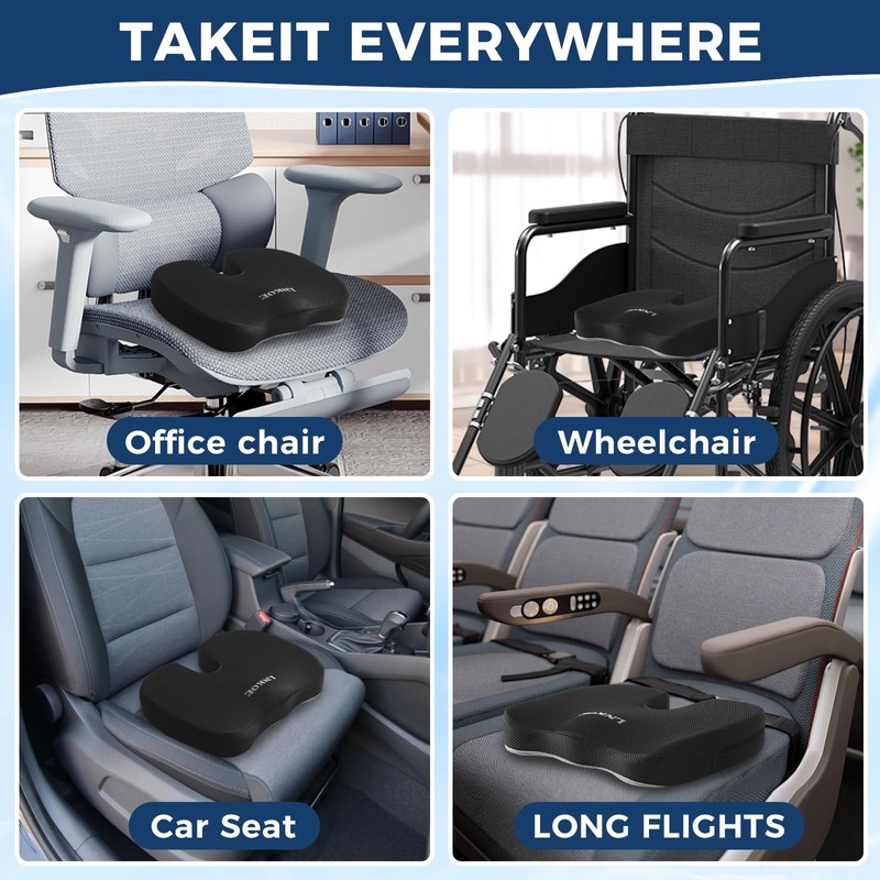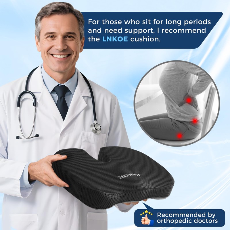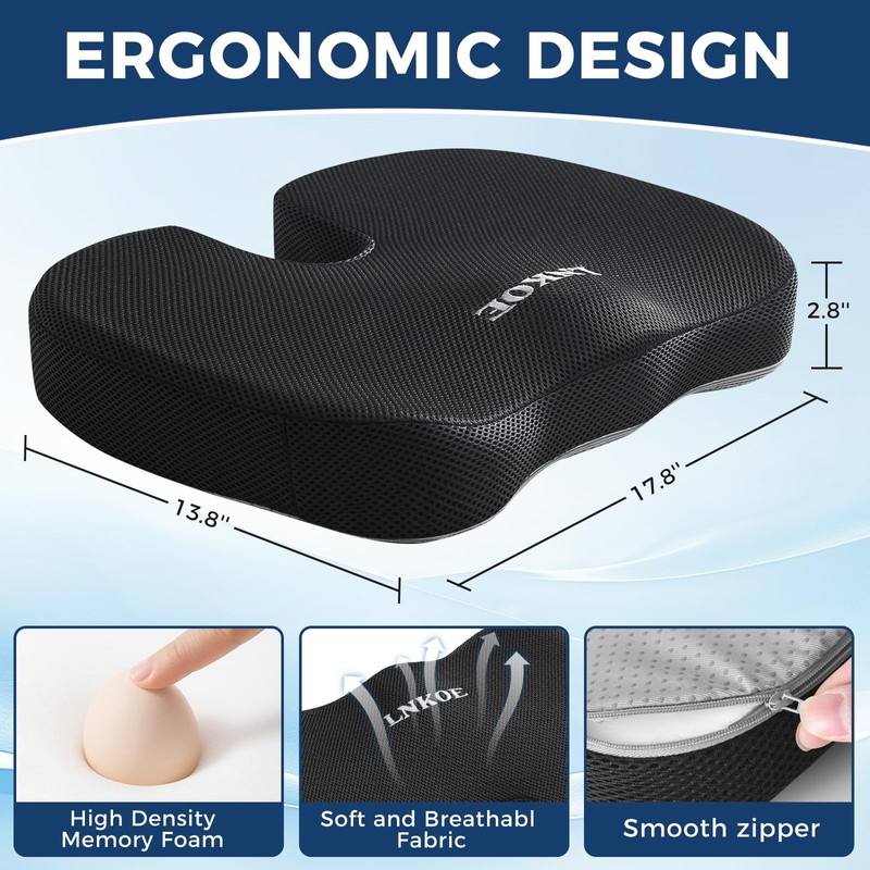 LNKDE Memory Foam Seat Cushion, Ergonomic Design, Black