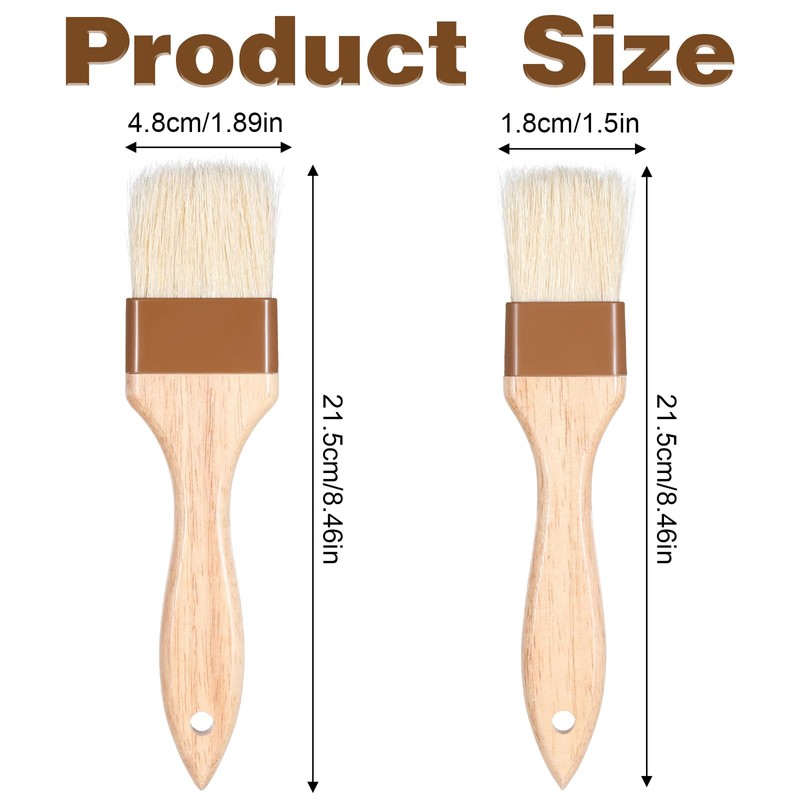 - PACKAGE INCLUDES You will receive two basting brushes with bristles of 1.5 inches and 1.9 inches in length - perfect for sweet and savory flavors when baking, grilling and cooking