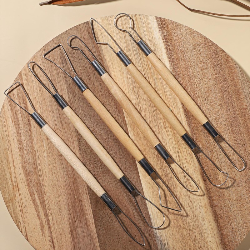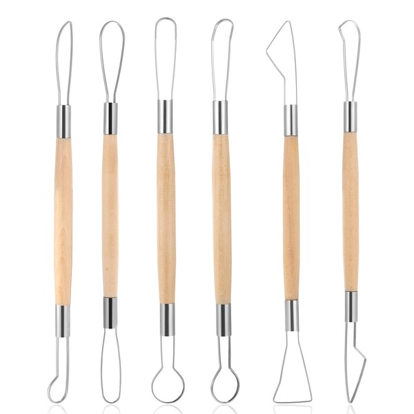 Lnngub 6Pcs Clay Sculpting Tools,Double-Sided Clay Sculpting Tools Set Clay Wire Loop Sculpture Set Wooden Handle Clay Carving Tools Pottery Trimming Tools Clay Sculpting Tools for Ceramic Wax Carving