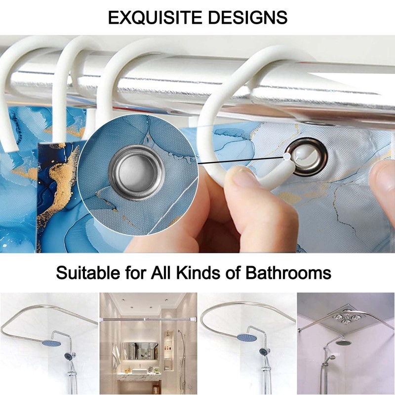 - [HD Pinting] Our blue marble shower curtain set adopts HD printing and featuring vivid colors, not fade, crisp lines and delicate hemming,The shower curtain is arranged in your bathroom, just like a realistic landscape. helping you to enjoy pleasant bath time.