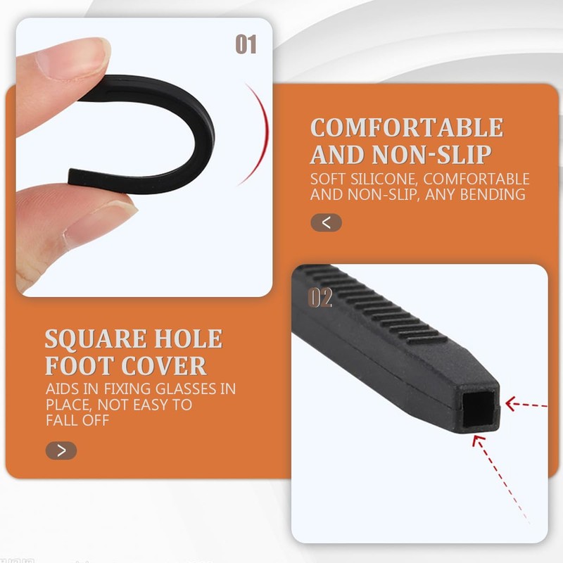 - GENTLE MATERIAL: These silicone eyewear ends are made from high quality silicone with excellent elasticity to prevent deformation and are gentle on the skin. You will experience durability and comfort. Despite their light weight, these tips exert very little pressure, ensuring that you hardly feel them when wearing your glasses.