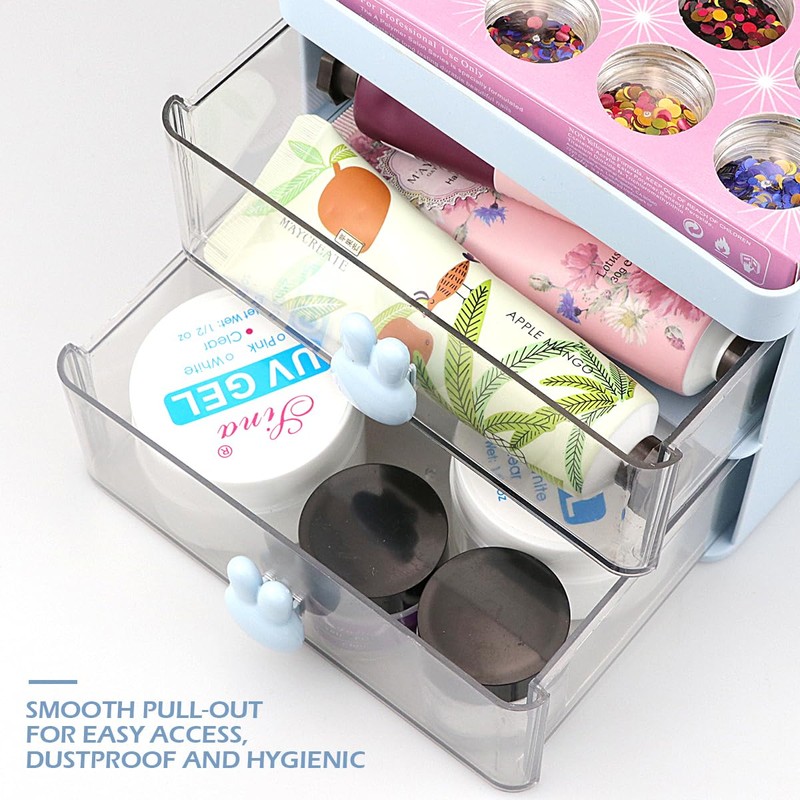 LNQ LUNIQI Small Plastic Storage Drawer with Bunny Handle Makeup Organizer Desktop Stationery Holder Storage Box Office for Office School Home(Blue)