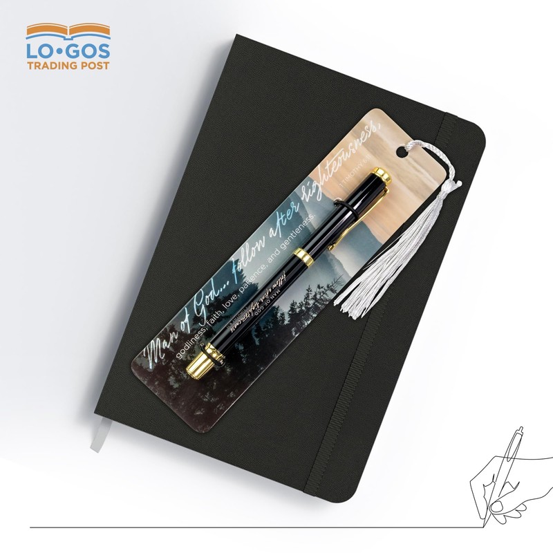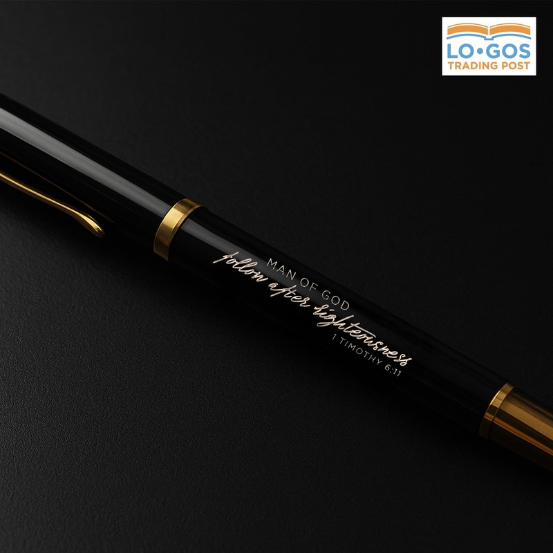 LO·GOS TRADING POST Follow After Righteousness 1 Timothy 6:11 - Engraved Scripture Pen - Ballpoint Bible Pen - Smooth Black Ink Inspirational Christian Pens for Daily Journaling, Religious Gifting