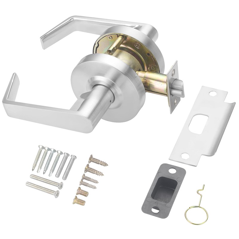- COLOR & SIZING: Our commercial door locks are offered in Satin chrome and aluminum finish (26D finish). Designed for 1-3/8" to 1-3/4" (35mm to 44mm) doors, but they fit 1-1/2" to 2" thick doors and come standard with a 2-3/4" backset. These are non-handed commercial door levers, so they are suitable for either right- or left-handed doors. (optionial 2-3/8" backsets are available)