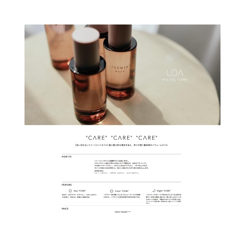 - Enjoy a layered fragrance by combining LOA THE OIL "CARE" and LOA THE OIL