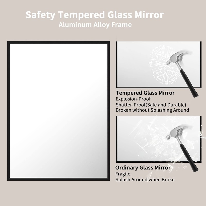 The black framed mirror is built with tempered glass and aluminum alloy frame which features anti-rust, shatter proof and explosion-proof, safe and durable to use.