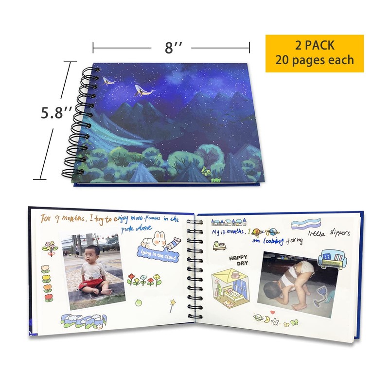 LOADWRITE Small Photo Album 2 Packs, 8'' x 5.8'' Stick Book DIY Scrapbook Memory Book 20 Self Adhesive Pages for Wedding, Baby Shower Growth, Travel MOON