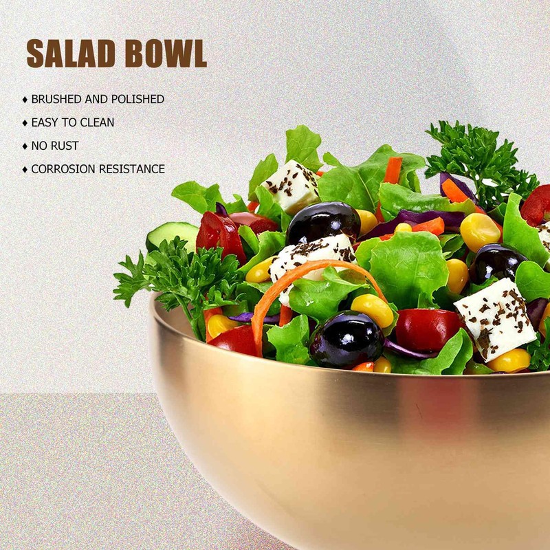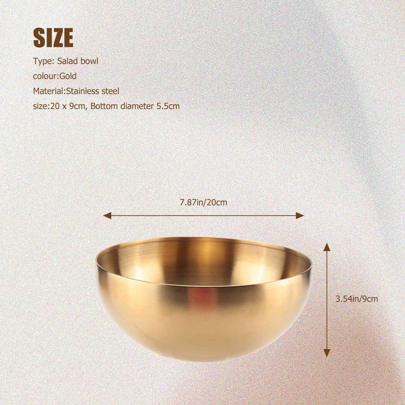 Lobamop Large Capacity Stainless Steel Salad Bowls Korean Soup Rice Noodle Ramen Bowl Kitchen Food Container,Gold,20X9CM