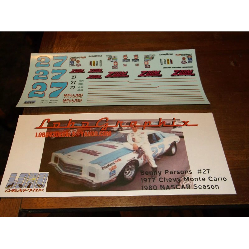 LoboGraphix Benny Parsons #27 1977 ZOOM Chevy MC 1/24th scale decals LoboGraphix